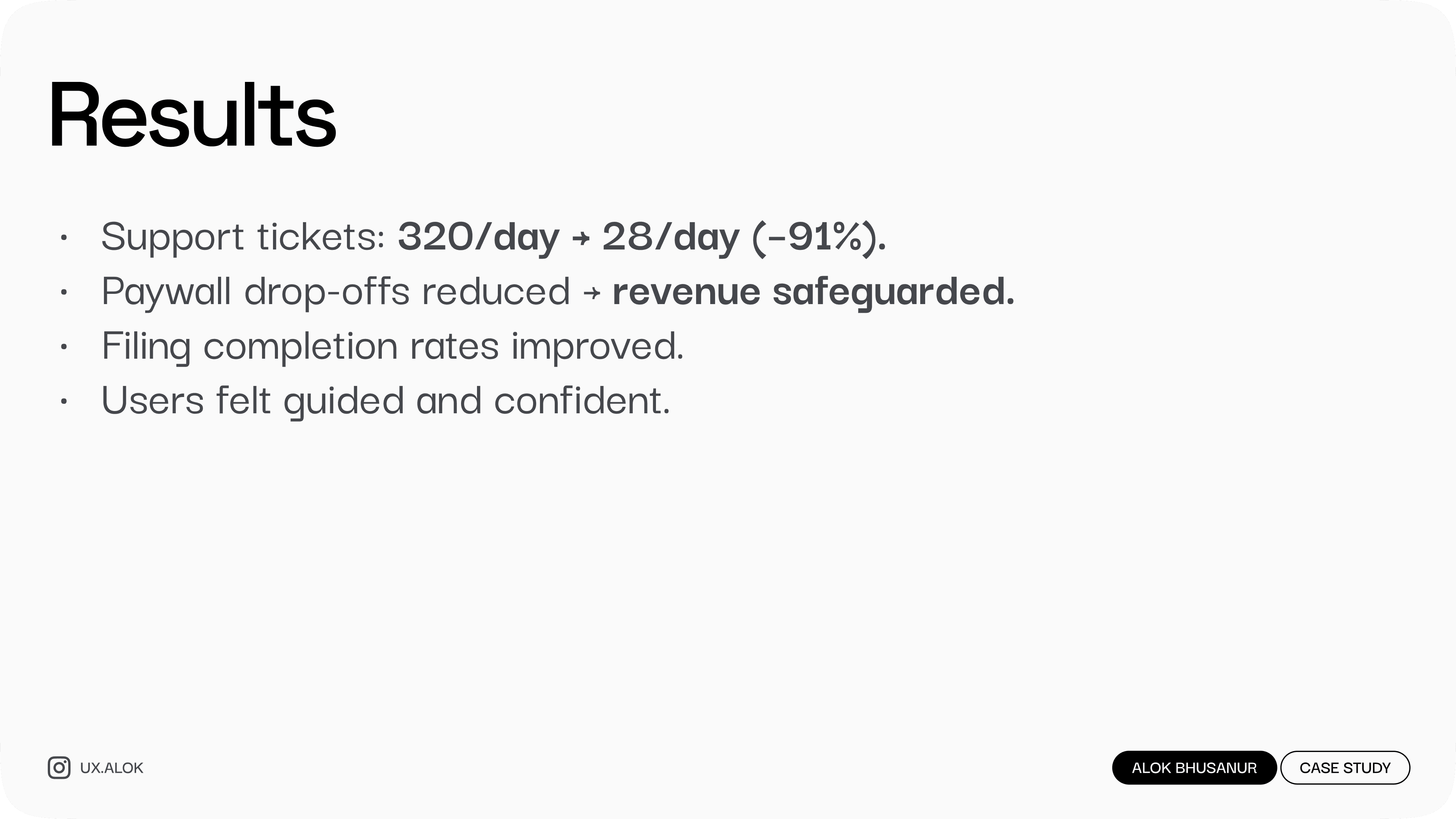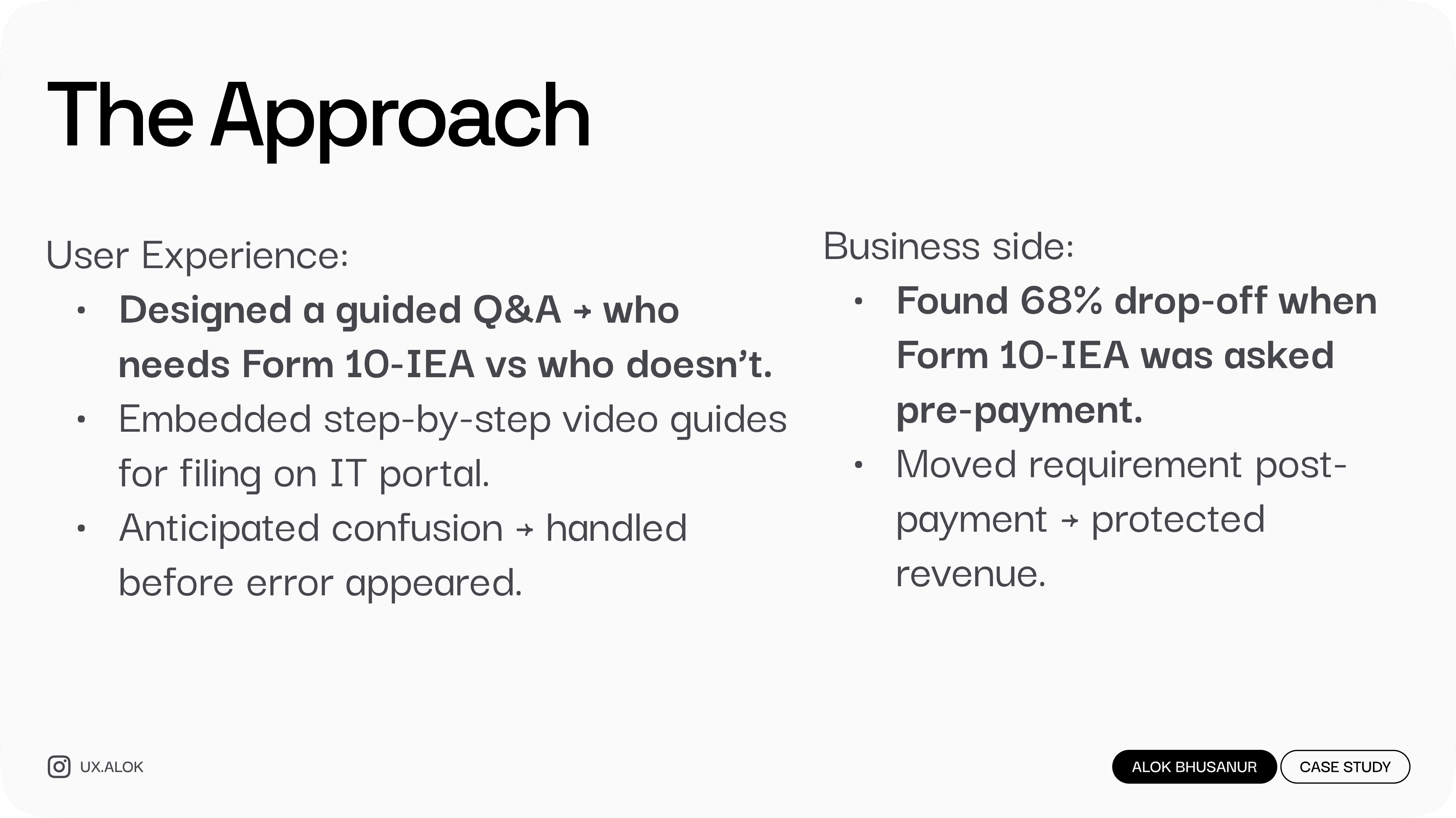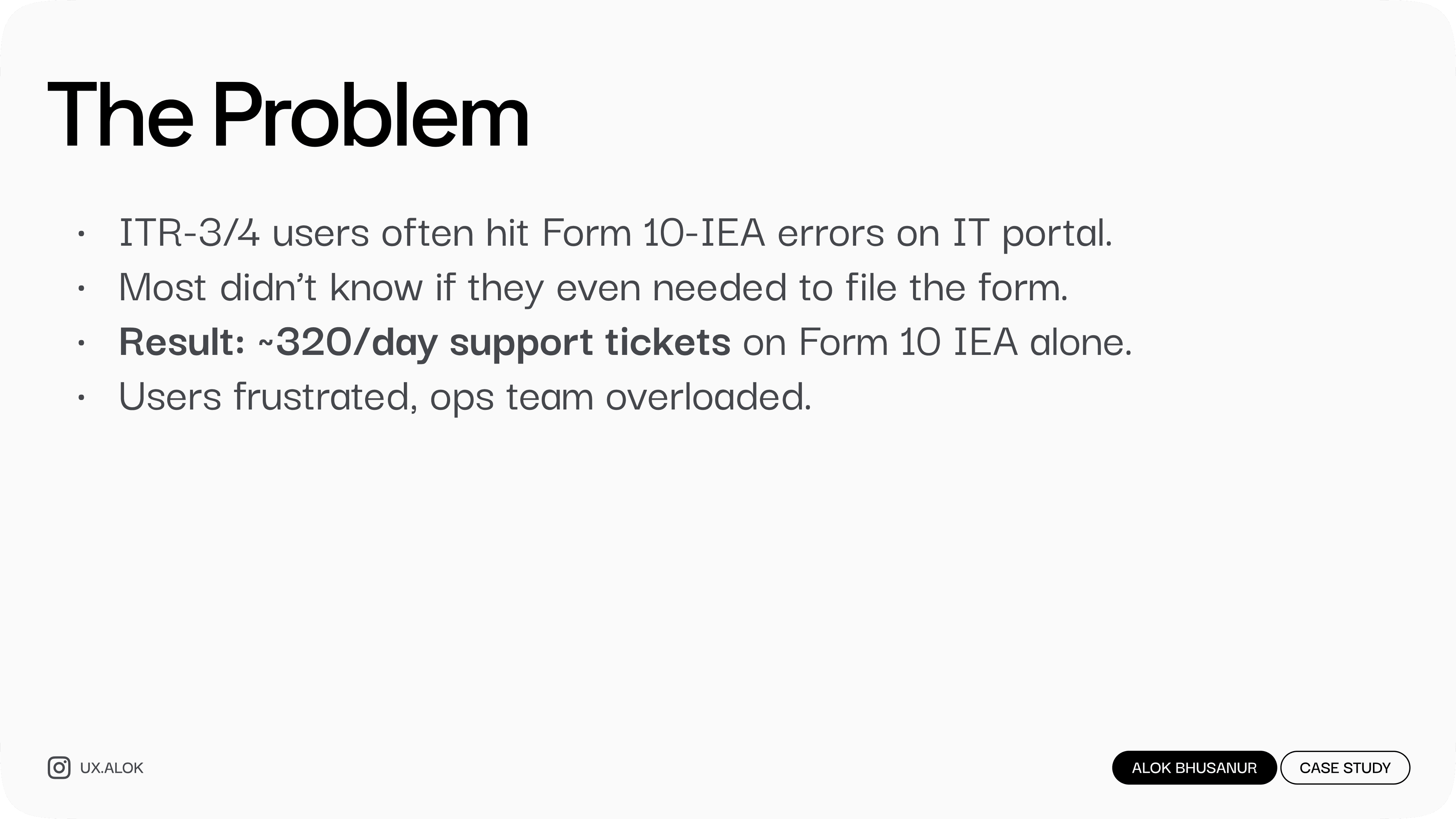 Users were stuck with Form 10-IEA errors, unsure if they even needed to file it. This single issue created 320+ support tickets every day. By redesigning the experience into a simple, guided check, we cut that down to 28/day while protecting revenue.