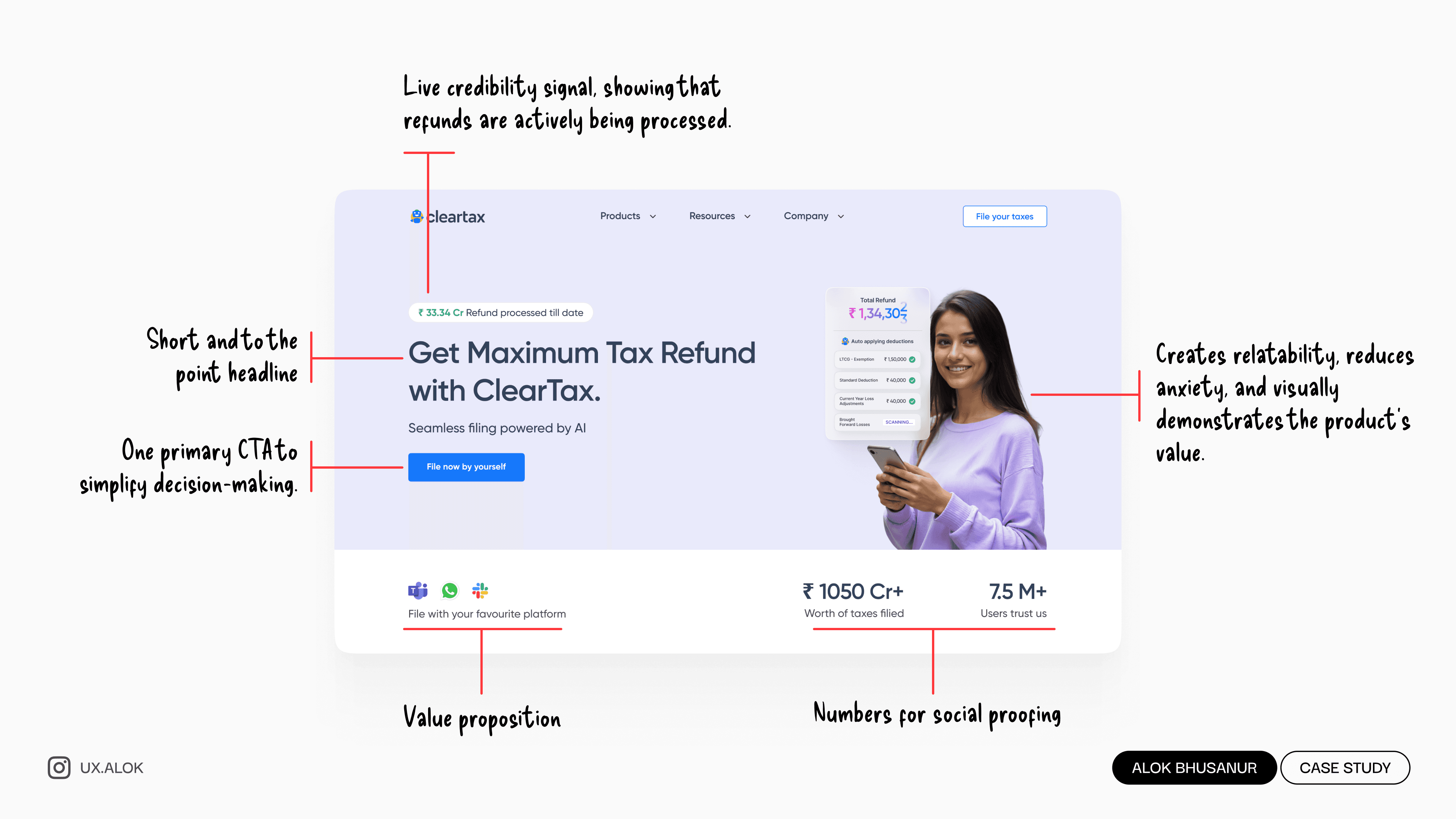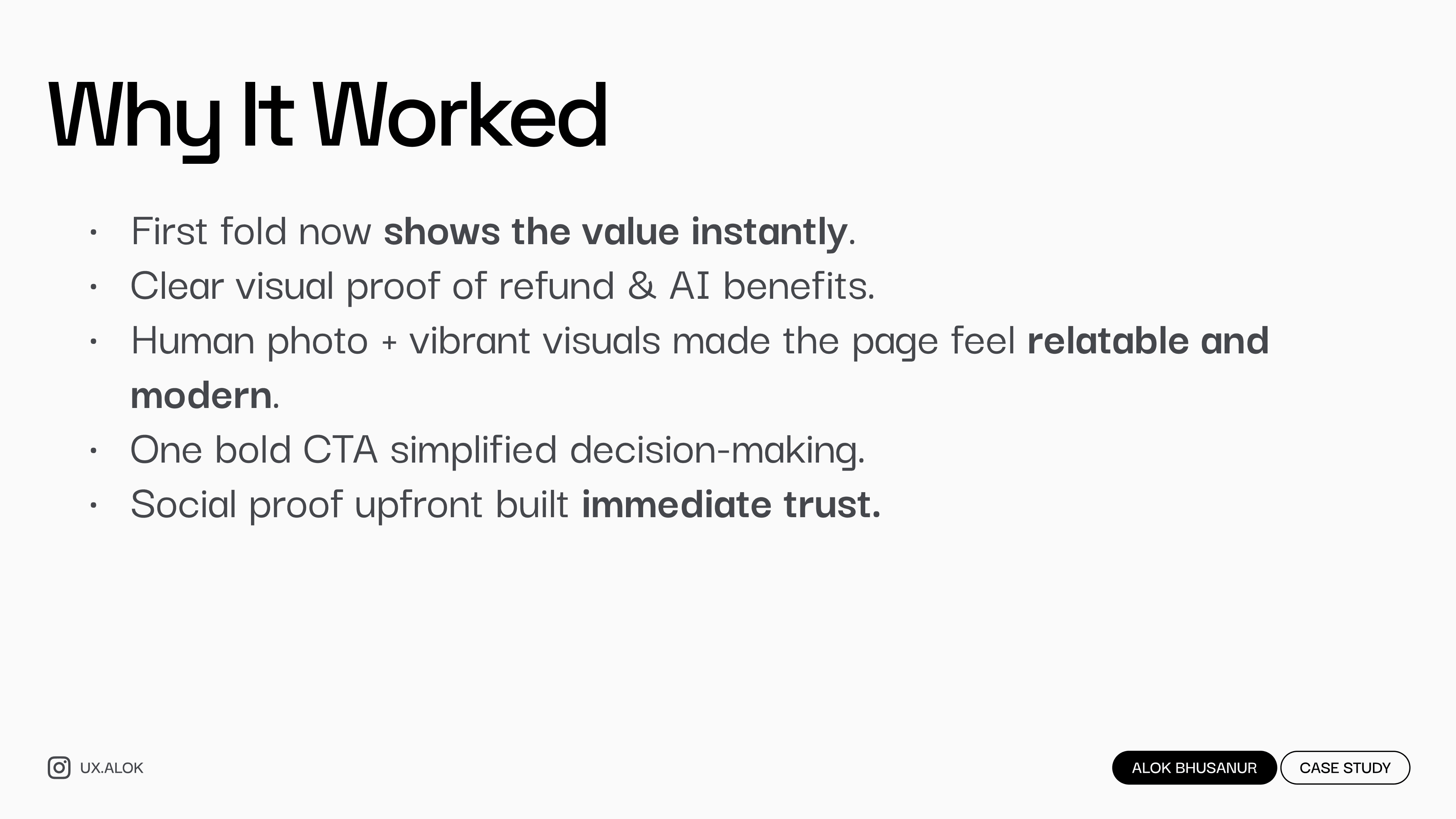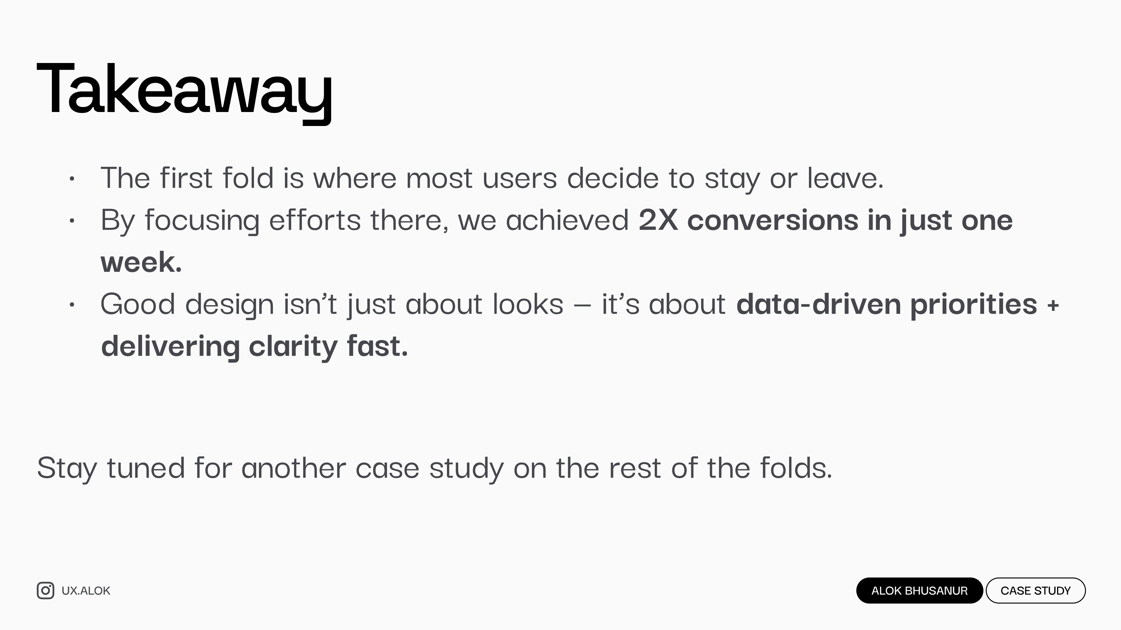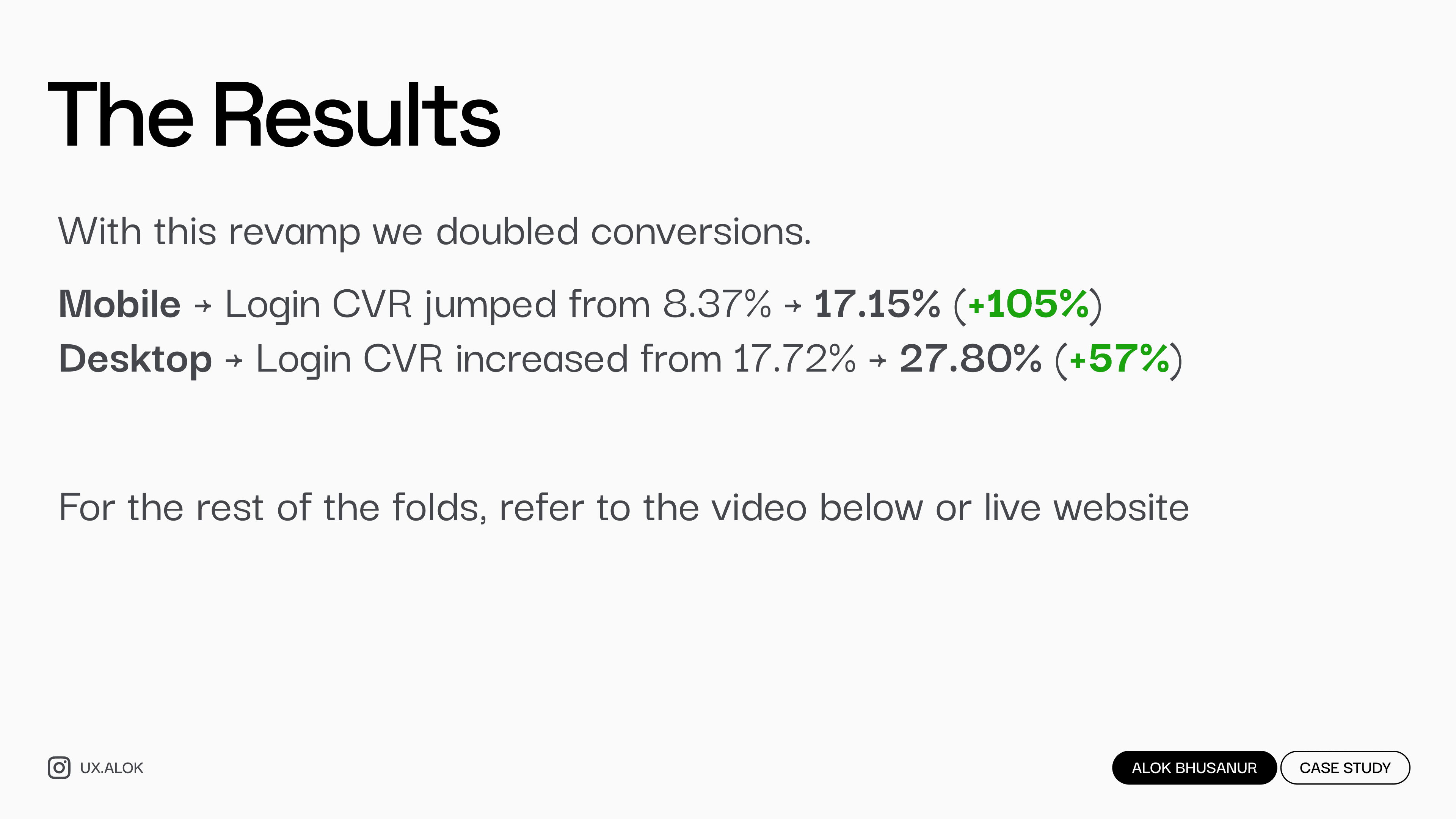 Our old ITR filing landing page was functional but not convincing. Users were dropping off heavily after the first fold. Here’s how I led a small design team to revamp the experience — making it more human, clear, and action-driven — which resulted in a 2X jump in conversions.