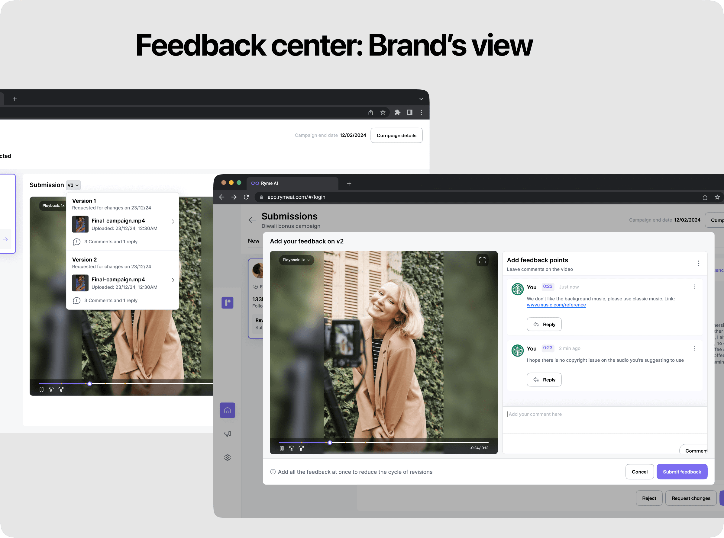 Brands can review influencer submissions, provide detailed comments, and request revisions.