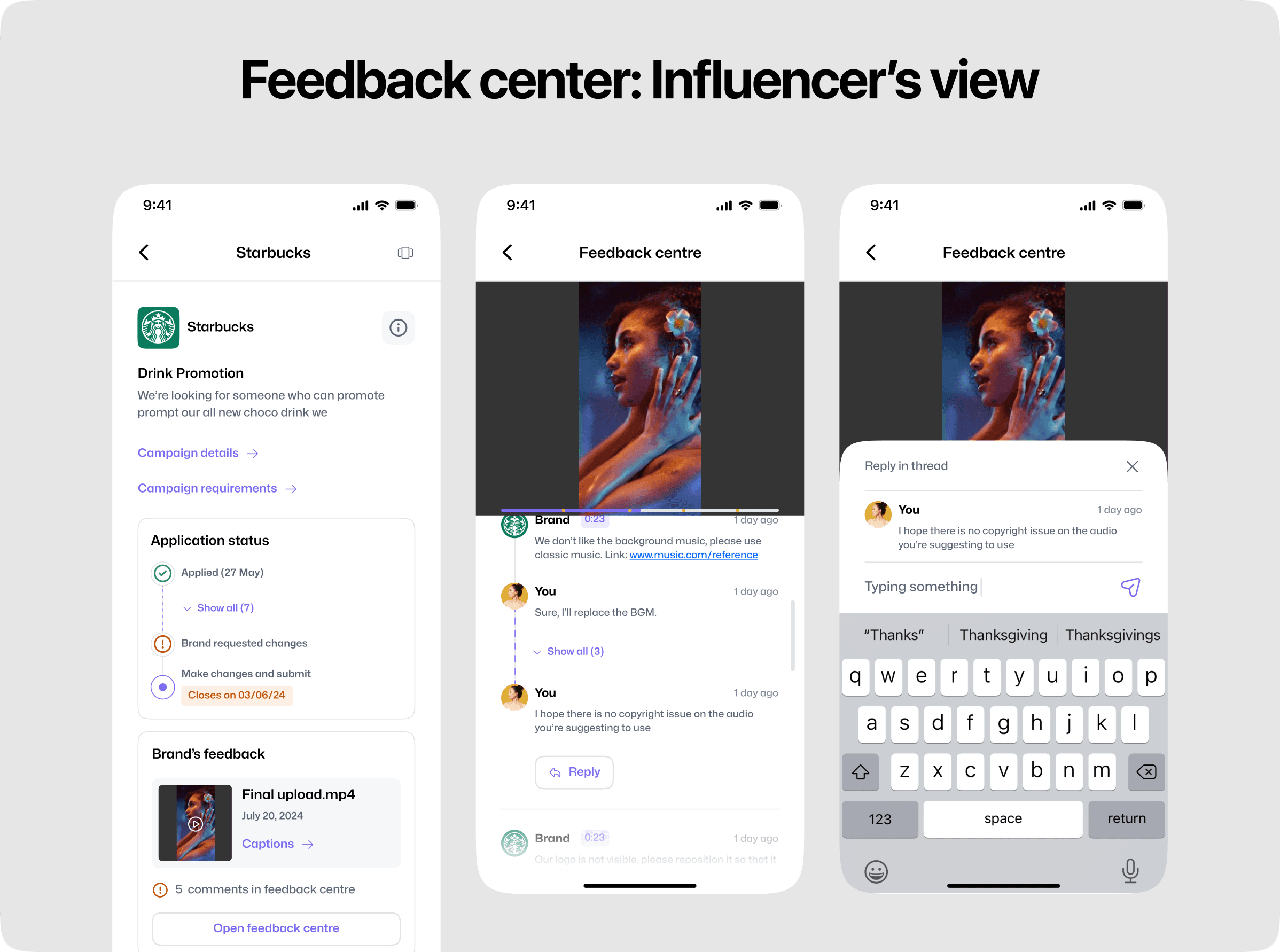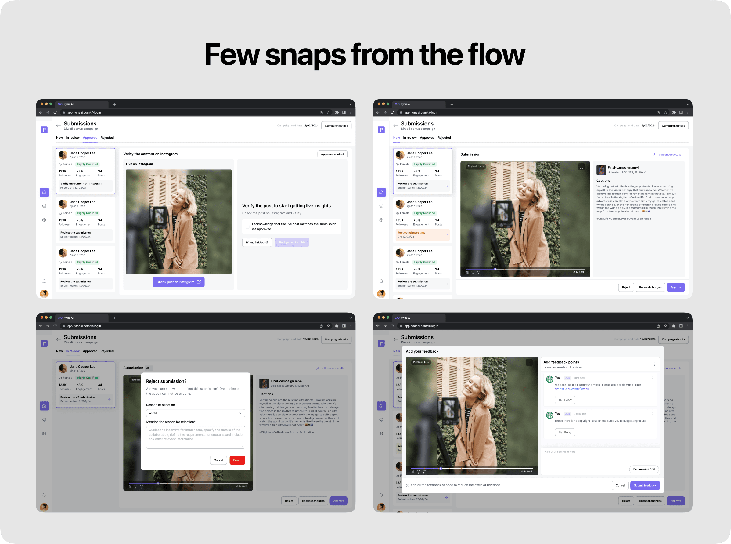 Efficient Communication: Creating a system where brands could easily review applications and provide actionable feedback to influencers.