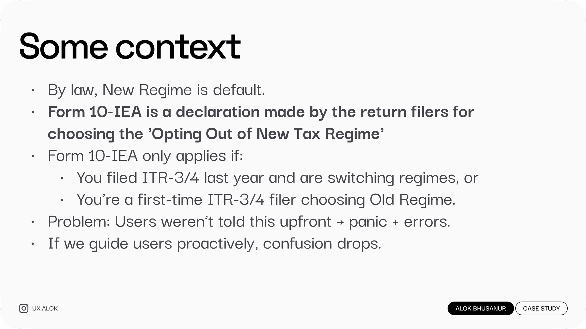 Users were stuck with Form 10-IEA errors, unsure if they even needed to file it. This single issue created 320+ support tickets every day. By redesigning the experience into a simple, guided check, we cut that down to 28/day while protecting revenue.